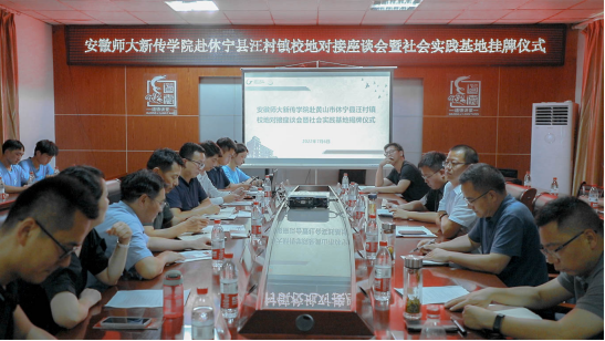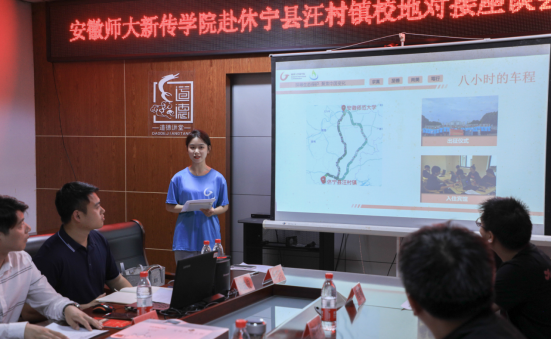 会上,江向荣代表休宁县委、县政府向学院师生来休宁实践、洽谈表示热烈欢迎和衷心感谢,他希望同学们能够聚焦汪村历史文化、聚焦汪村红色故事、聚焦汪村乡村振兴,以此来助力汪村发展。舒蔚剑向师生们详细介绍了汪村镇的地理位置、特色资源、生态建设,并指出“人才振兴是五大振兴中最重要的环节”,他充分肯定了时间团队的实践成果,并希望师大的学子们能够常来汪村,常驻汪村,俯下身子、扎进泥土,用笔尖、用镜头记录汪村的巨大变化,扩大汪村的宣传力度。