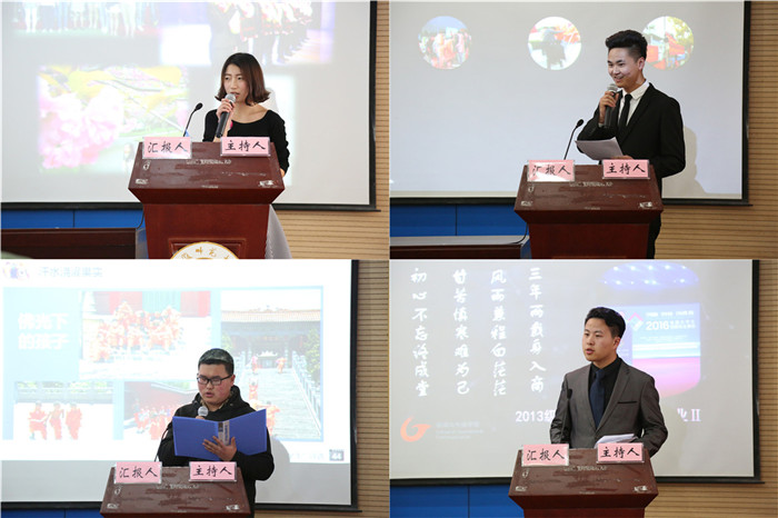 无怨无悔、不辞辛劳的“搬运工”,用镜头剪影青春生活的“摄影师”,无私奉献、只为见到花儿笑的“志愿者”和荆棘满布、永不言弃的“创业家”……汇报人动听诉说的身影都深深的印在了每个观众的脑海中,也深深激发了聆听学子的进步发展的动力。