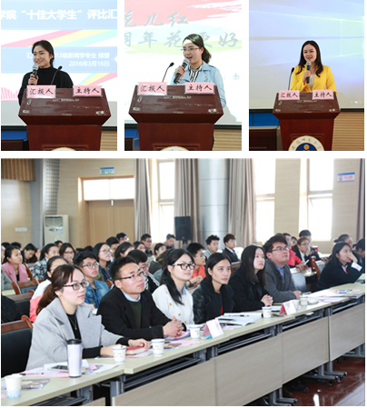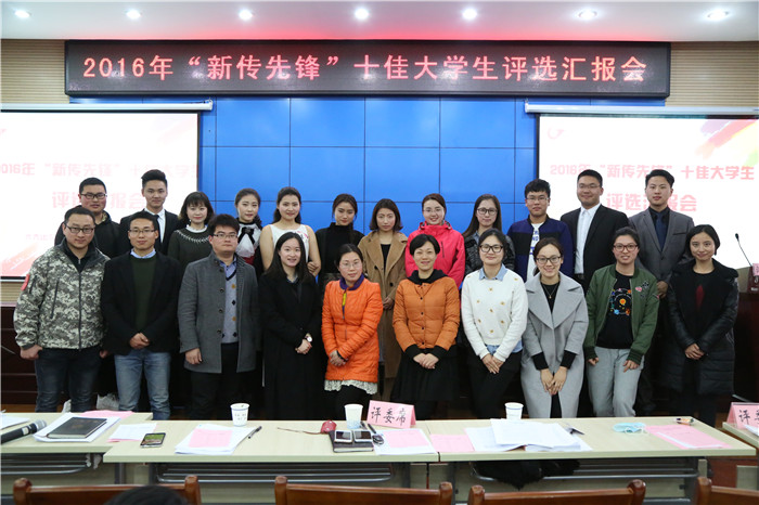 3月16日下午,第六届“新传先锋”十佳大学生评选汇报会在学校圆形报告厅顺利举行。学院教学副院长马梅、院党委副书记宋静、院团委副书记郁悦、陈德洋及各年级辅导员担任此次汇报的评委。2014和2015级各专业的学生代表集中观摩了汇报。