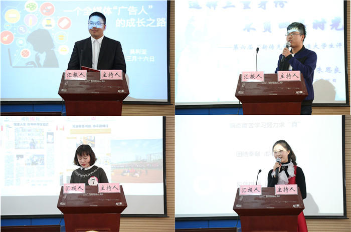 14位来自2012、2013级6个专业的新传优秀学子通过PPT的现场汇报自身在专业学习、社会实践、专业赛事、创新创业、志愿服务等方面丰富经历。简短而精炼的汇报勾勒出一批优秀新传学子充实而富有意义的大学时光,展现出bat365在线中国登录入口优秀学子的卓越风采。
