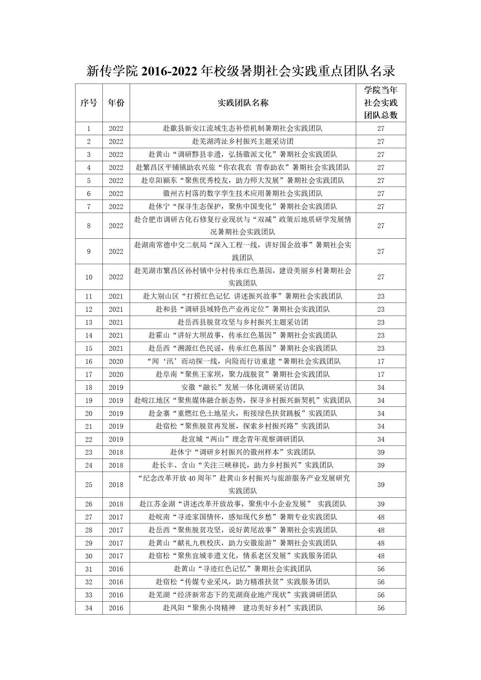 bat365在线中国登录入口2016-2022年校级暑期社会实践重点团队名录.docx