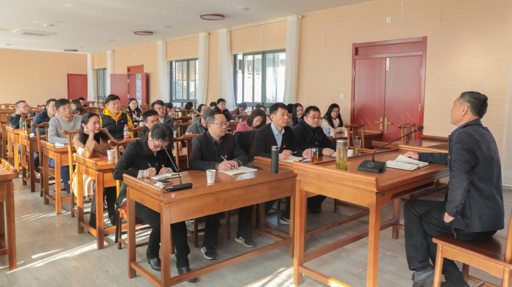 学习会上,胡太平书记围绕龙山村概况、个人工作经历和“龙山梦”蓝图三个方面展开分享。胡太平书记介绍,龙山村地处何湾镇西北部,与铜陵县、青阳县接壤,属丫山花海石林4A景区范围,境内旅游资源丰富,因其喀斯特特色地貌,适合种植中药材,因此大力发展凤丹产业。坚守大山二十余载,胡太平书记积累了丰富的工作经验,从党组织队伍开始抓建设,为民办实事,解决“三座大山”的问题(修路、建自来水厂和污水处理系统、解决用电问题),发展生态之路,解决村民矛盾从“中间派”入手,助力乡村振兴和产业发展等,书记娓娓道来,生动展现了基层党员干部的工作智慧与奉献精神。最后,胡太平书记讲述他们的“龙山梦”规划蓝图,即以党建引领产业发展,突出发展特色中药材产业,打造中药材研销基地,建设历史文化展厅,打造省级古村落,保护生态景点,做好农副产品等,并努力打造“有的玩,有的做,有的吃,有的带”乡村旅游产业。