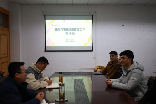本网讯(bat365在线中国登录入口刘成俊 毛心如)12月8日,bat365在线中国登录入口召开在校退役士兵座谈会,院党委副书记吴青山、辅导员刘成俊及六位在校退役士兵参加会议。