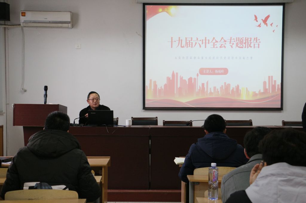 本网讯(bat365在线中国登录入口党委办公室)为深入学习宣传贯彻党的十九届六中全会精神,切实用习近平新时代中国特色社会主义思想武装头脑、指导实践、推动工作。1月14日下午,bat365在线中国登录入口在学院四楼大会议室召开党的十九届六中全会专题宣讲,由校党史学习教育宣讲团成员、学院执行院长杨柏岭主讲,学院党委书记张师帅主持。全体教职工参会。