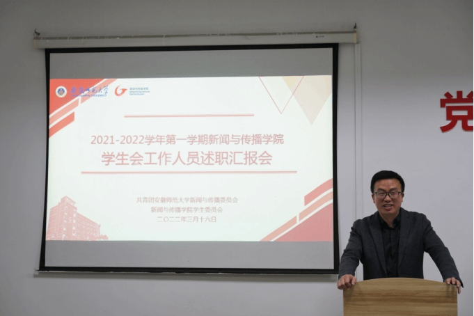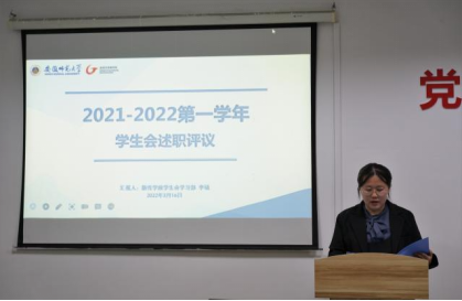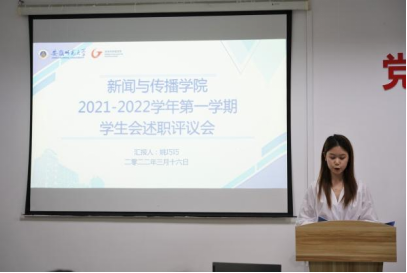 会上,各工作部门部长进行了述职汇报。部长们分别从部门建设、管理协调、工作时效和个人学习情况四个方面进行了报告,对上一学期的工作和学习做了全面回顾。学习部部长李硕和陈诗瑶提到了她们带领五个女生部员不断进步,克服工作中的困难,展现了新传女生的力量;文体部部长姚巧巧和刘佳良子分享了自2021年以来新传学子在文艺体育方面所取得的骄人成绩。