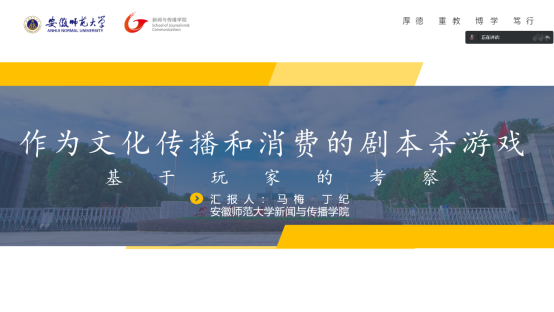 此次会议由南京师范大学bat365在线中国登录入口党委书记沈菲、副院长、教授邹举、中国高校影视学会媒介文化专业委员会秘书长、广州大学bat365在线中国登录入口副院长、教授张爱凤等专家主持,共设10个分会场,多位专家学者参会。马梅教授和丁纪在数字时代下的文化景观分论坛作《作为文化传播和消费的剧本杀游戏:基于玩家的考察》论文汇报;郭增强在作为生活实践的媒介景观研究生专场分论坛作《电影跨媒介叙事:批评话语、诠释理路与媒介考古学》论文汇报;马梅教授同时担任数字传播中的景观与符号分论坛评议人。