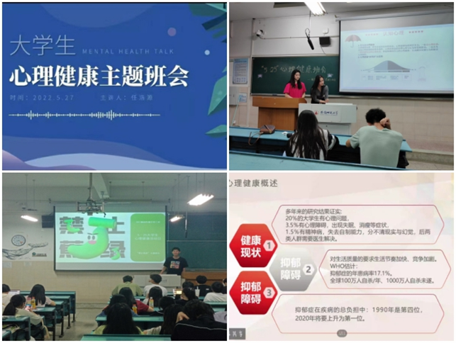 除此之外,学院部分班级举行了心理健康主题班会以及开展素质拓展团建活动。在津南草坪、南体育场、自习教室开展各种类型的活动,同学们积极参与,活动效果良好。各种各样的活动内容与活动形式帮助同学们愉悦了身心,收获了快乐。“5·25大学生心理健康月”系列活动通过丰富多彩的心理健康文化活动,进一步拓展心理健康教育工作内涵,引导广大学生正确认识自我,悦纳自我,学会自我调节,关爱他人,学会感恩,促进学生健康成长成才。