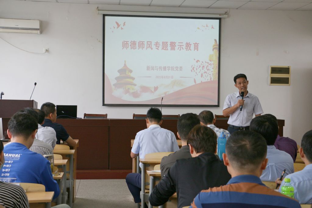 本网讯(bat365在线中国登录入口党委)8月31日下午,bat365在线中国登录入口在学院四楼会议室开展新学期师德师风专题警示教育,全院教职工参会,会议由学院党委书记张师帅主持。