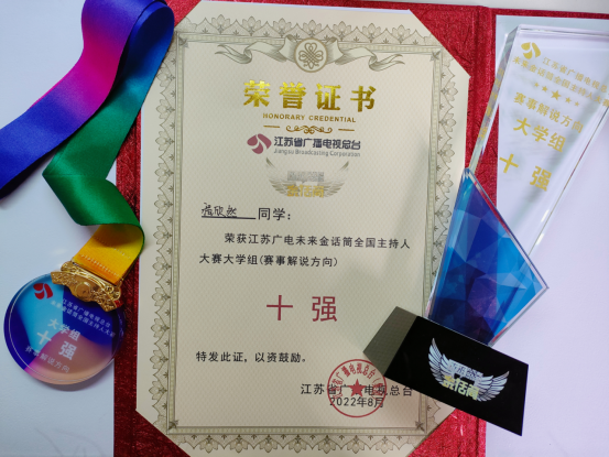 本网讯(bat365在线中国登录入口 石益娜 程欣然)8月26日,由江苏省广播电视总台主办的第九届“未来金话筒”全国主持人大赛大学组决赛在江苏南京落下帷幕。我校bat365在线中国登录入口播音与主持艺术专业学子在激烈角逐中脱颖而出,荣获佳绩。2020级程欣然、石益娜双双荣获赛事解说赛道全国十强,2019级卜应俏、2021级许诺荣获全国百强(不区分赛道),展示出我校播音专业的办学水平与学子的青春风采。