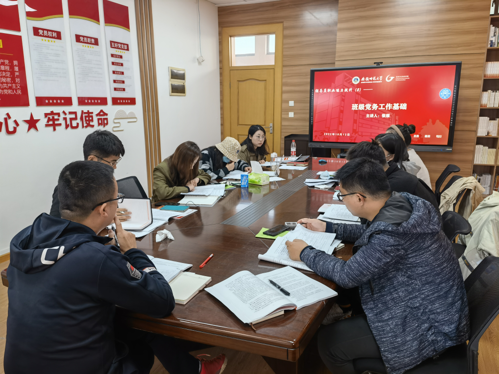 培训会第二讲由辅导员张雁主讲,主讲主题为《班级党务工作基础》。