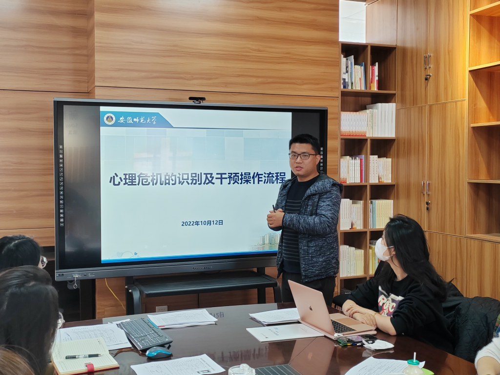 培训会第一讲由学校心理健康中心老师、学院兼职辅导员陈程主讲,主讲主题为《心理危机的识别及干预操作流程》。