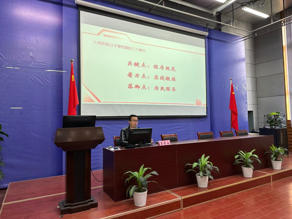 院党委副书记吴青山为学员们详细解读了学校发展党员工作实施细则。他指出,入党积极分子要把握好组织入党程序规范这个关键点,要强化好实践锻炼这个着力点,要践行好为民服务这个落脚点,并告诫同学们一定要脚下有路,眼里有光。在谈“思想入党”的问题上,他结合自身的个人修养要则与同学们共勉,并希望同学们以勤学以提高政治判断力、以善思以提高政治领悟力、以笃行以提高政治执行力,争取以自身优异表现和良好的党性修养早日加入党组织。