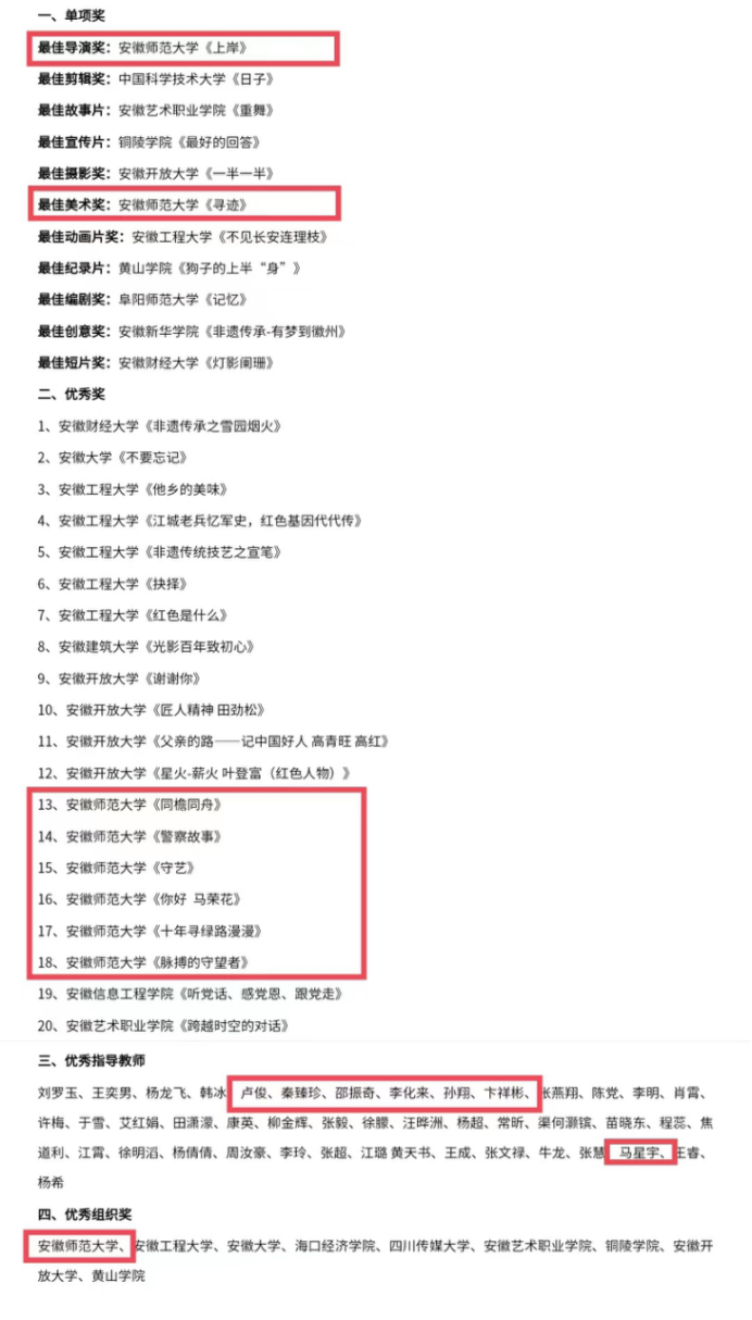 由中共安徽省委网信办、安徽省教育厅、共青团安徽省委员会、安徽省文联主办,安徽省青少年网络素养教育bat365在线中国登录入口基地、bat365在线中国登录入口bat365在线中国登录入口、芜湖市委网信办承办,安徽省影视家协会合作的“光影话百年 文明润江淮”第二届安徽省大学生微电影展活动评审工作已于近期结束,本次活动受到省内外高校广泛关注,共收到来自全国30余所高校200余件作品。