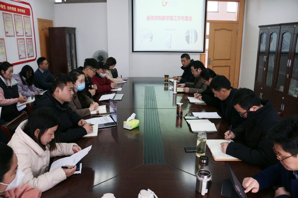 张师帅在主持会议时指出,寒假期间,班子成员、各科室同志心系学院、心系岗位、心系职责,没有把寒假当假放,没有让工作受影响,扎扎实实抓整改、规规矩矩守岗位、原原本本展形象、干干净净迎新春、时时刻刻润心田,各项工作高质高效、平稳有序。他强调,新发展、新征程,工作要聚焦,责任要强化,机遇要抢抓。全院上下要在谋上做文章,要锚定申博目标,紧盯卓越新闻人才培养,紧盯党员作用发挥,明确目标、增强信心,提前谋划、系统谋划,加快推进一流新闻学院建设。要在干上有实绩,树牢争先进位意识、爱生如子意识、创新发展意识、品牌形象意识,结合巡察整改,树立鲜明的实干实绩导向,时时把学生放心中,全面落实学校第十一次党代会确定的目标任务。要在难上有突破,勇于在人才引进上破题、在就业改革上破题、在优化学院文化建设上破题,聚焦人才作用发挥,突出改革创新发展。要做到安全第一,筑牢意识形态阵地,筑牢校园安全屏障,筑牢师德师风底线,时刻牢记校党委、纪委要求,敢于揭短亮丑、动真碰硬,始终把纪律和规矩挺在前面。