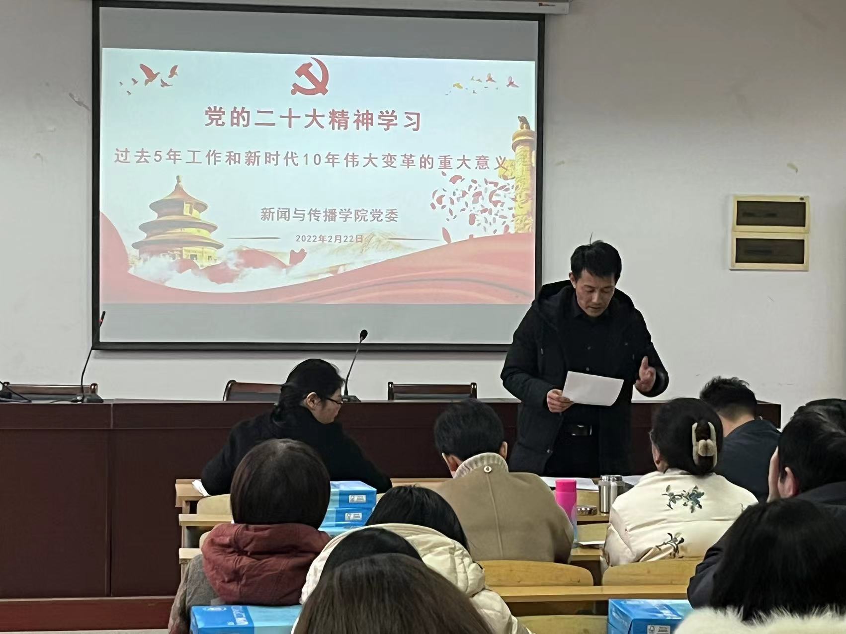 本网讯(bat365在线中国登录入口)2月22日下午,bat365在线中国登录入口在学院楼四楼会议室召开全院教职工理论学习会,深入学习党的二十大精神,会议由学院党委书记张师帅主持,全体教职工参加。