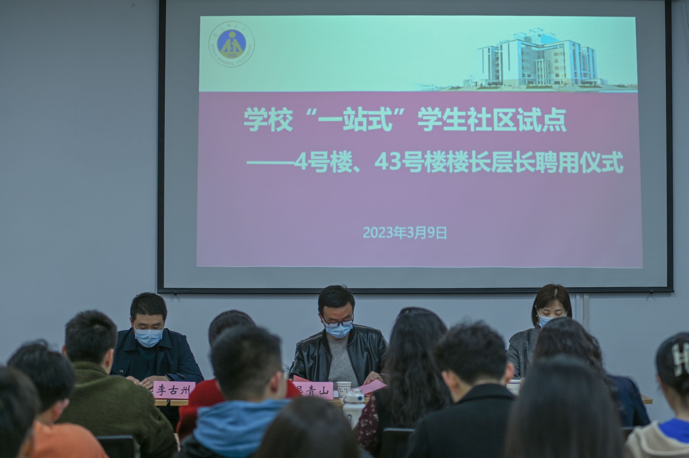为进一步推动一站式学生社区及建设,提升学生自我教育、自我管理和自我服务,3月9日下午,在学苑北楼9号楼205会议室,马克思主义学院、化学与材料科学学院、bat365在线中国登录入口联合组织开展了楼层长聘用仪式。会议由化学与材料科学学院党委副书记李古州主持,马克思主义学院党委副书记刘玉艳、bat365在线中国登录入口党委副书记吴青山、三个学院22级辅导员及4号楼、43号楼楼层长和寝室长代表到会参加。