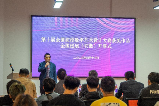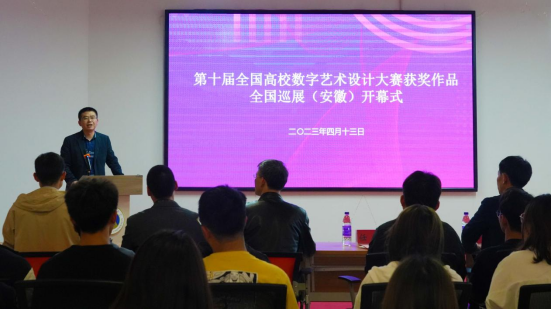 校党委常委、副校长任永宣布展览开幕并发表讲话,指出本次展览为同学们提供了良好的展示空间和交流平台,希望大家通过观摩学习,总结创作经验,开拓创作思路,在专业教师的指导下,积极参与第十一届赛事,以赛促学、以赛促创,在学科竞赛中提升创新与实践能力。