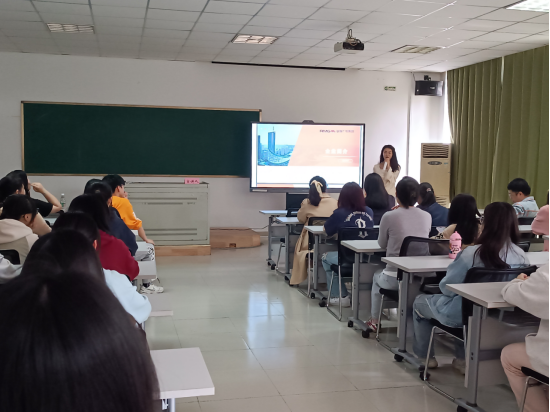 在现场互动环节,同学们积极与企业人员交流,围绕薪资待遇、实习时间提出自己的疑问,两位招聘负责人耐心解答,并表示非常期待同学们的加入。