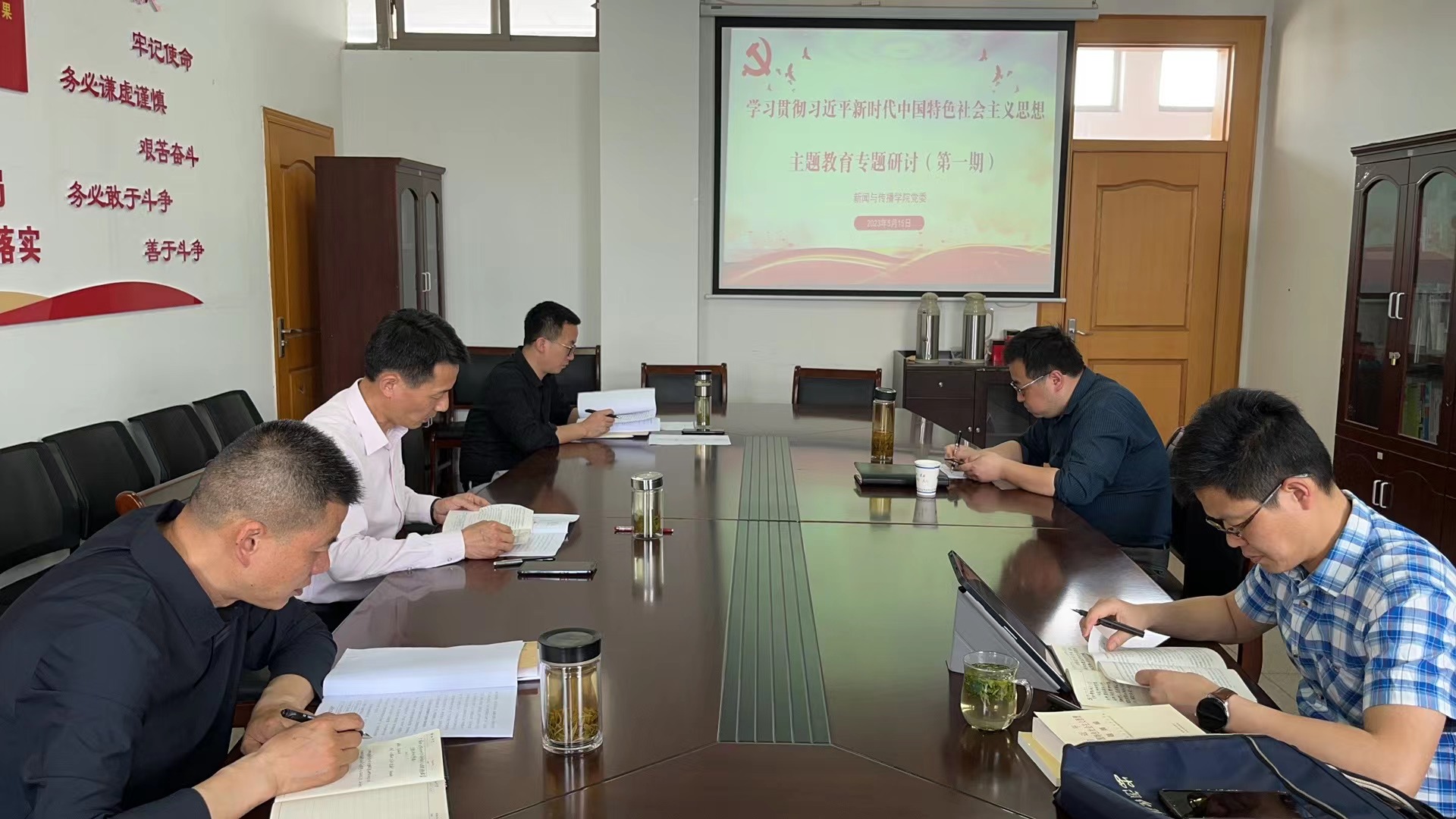 本网讯(bat365在线中国登录入口党委办)5月15日下午,bat365在线中国登录入口党委开展学习贯彻习近平新时代中国特色社会主义思想主题教育第一次专题研讨,学院党委委员参加,会议由学院党委书记张师帅主持。