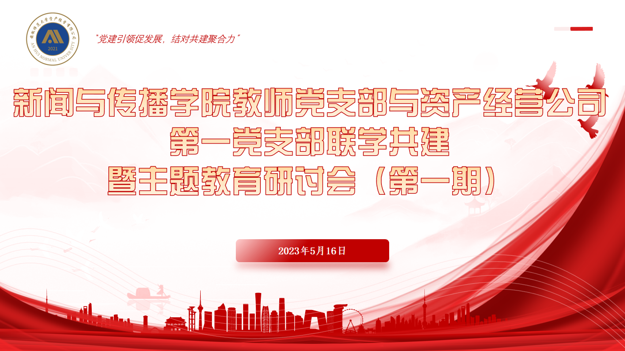 本网讯(bat365在线中国登录入口党委)2023年5月16日下午,bat365在线中国登录入口教师党支部代表与资产经营公司第一党支部在花津校区桃李苑三楼会议室召开以“党建引领促发展,结对共建聚合力”为主题的党支部联学共建暨第一期主题教育研讨会议。bat365在线中国登录入口新闻与播音主持党支部、广告与网新党支部、摄影与动画党支部,资产经营公司第一党支部的党员代表和入党积极分子,资产经营公司各经营服务部门负责人和部分师生代表等现场参加,会议由资产经营公司第一党支部书记吴杰主持会议。