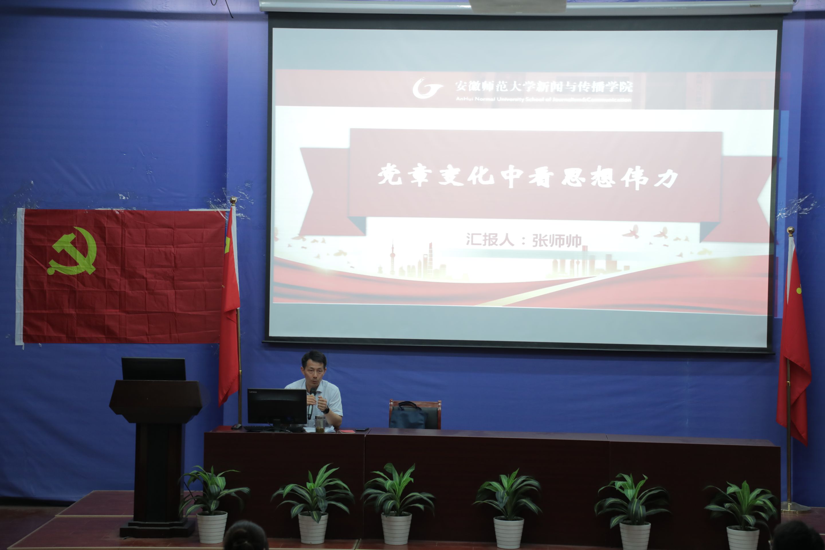 张师帅以“党章变化中看思想伟力”为题讲授主题党课,主要围绕党章建设历程,二十大新党章精髓要义、修订背景、修订内容、时代价值和学习启示三个方面进行了详细讲解,强调党章建设是党的建设的重要组成部分,见证了我们党产生、发展、壮大、成熟的光辉历程,并告诫在场党员同志们,要在党章的“变”与“不变”中,始终不忘初心、牢记使命,强化党员义务履行,加强党的创新理论学习,强化担当、干净、斗争,注重工作能力培养,主动服务同学,要切实用自身行动让党员身份看得见、让党旗飘在一线,努力在新时代新形势下,发挥好支部战斗堡垒和党员先锋模范作用。