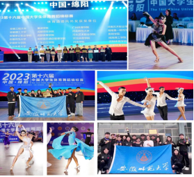 据悉,本届比赛共有来自北京体育大学、南京大学、武汉大学、四川大学、同济大学等全国140所高校的1700余名运动员参赛,创历届锦标赛人数和规模之最。来自我校各学院的13名体育舞蹈队队员在领队金涛院长和教练员崇玉萍、张洁老师带领下,参加本届比赛项目角逐。队员们通过《天鹅之吻》《最美的太阳》等项目,很好诠释了体育舞蹈的专业内涵,充分展示了师大人“厚重朴实、至善致远、追求卓越、自强不息”的精神。