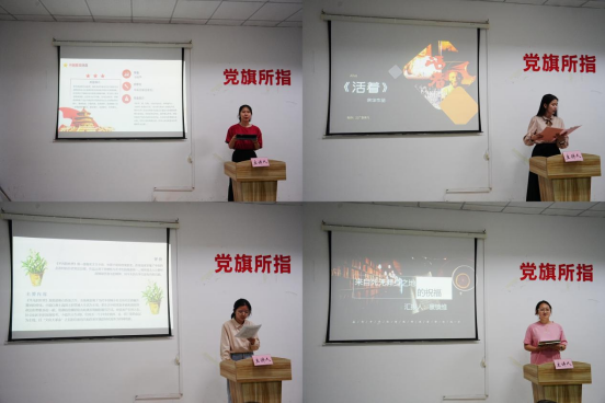 来自22级播音与主持艺术专业的江舒娴深情地向观众们解释了“一说一做”的含义,说明了她对《习近平的七年知青岁月》的兴趣之始。来自21级广告学专业的李凡娓娓道出了阅读余华的《活着》的感悟,她从作者写这本书的缘由延伸到死亡与活着的思考,又结合《时代》周刊、《华盛顿邮报》等经典评论总结了自己的收获和释然。来自22级新闻传播学类专业的吴悠然介绍自己阅读余秋雨的《文化苦旅》的收获,她阐述了本书的评价、审美特色以及推荐缘由,并阐述了自己的所思所感。来自22新闻传播学类专业的马文雅分享的则是纪实文学《梁家河》,借助视频播放和图片展示来激发观众的兴趣,同时她还以自身阅读打卡的经历向观众们分享了“用心读、读目录”的读书方法。