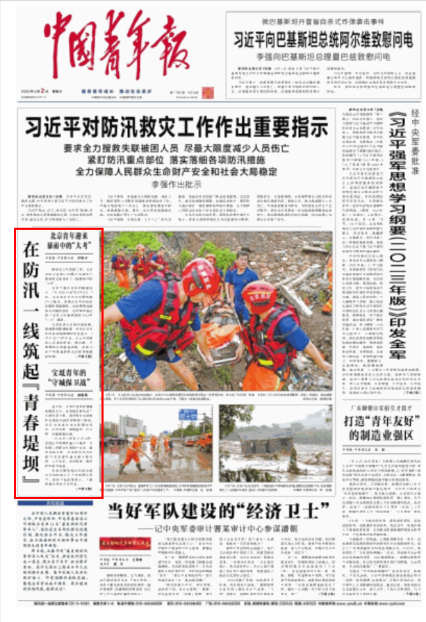 【原文链接】:北京青年迎来暴雨中的“大考” http://zqb.cyol.com/html/2023-08/02/nw.D110000zgqnb_20230802_4-01.htm