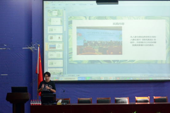 2021级新闻传播学专业的周昱瑾和2022级广播电视专业的常迦铭分别从学术研究和实习实践两个方面跟大家分享了自己的研究生生活,周昱瑾强调一定要从入学就开始规划研究生生活,清晰认识自己的优势和不足,要多向导师请教,把握一切资源提升自己,同时鼓励学弟学妹要勇于尝试,只有尝试才可能会有机会。常迦铭结合自己的实践经历,向大家强调,要在实践中多向老师学习,增强实战经验,同时要多总结经验教训,遇到问题及时请教,在一次次锻炼中迅速成长。