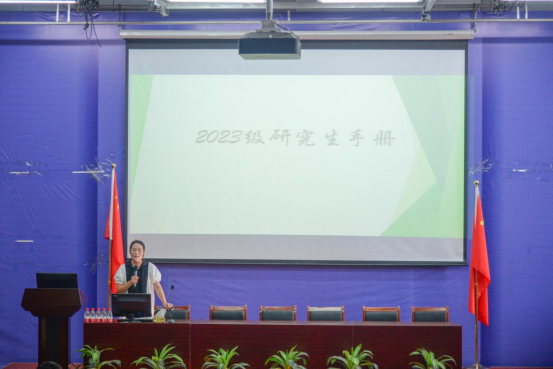 研究生秘书崔霞对近期的研究生工作进行了解读和布置,带领2023级全体研究生学习了《研究生手册》,向大家介绍了研究生培养管理过程、硕士毕业要求、校规校纪处分、评优评奖细则等方面的规章制度,希望帮助大家了解研究生阶段的学习生活,做好具体学习计划。也希望同学们都做到“日有所思、学有所成”,充实的顺利的度过读研生活,不虚时光,满载而归。