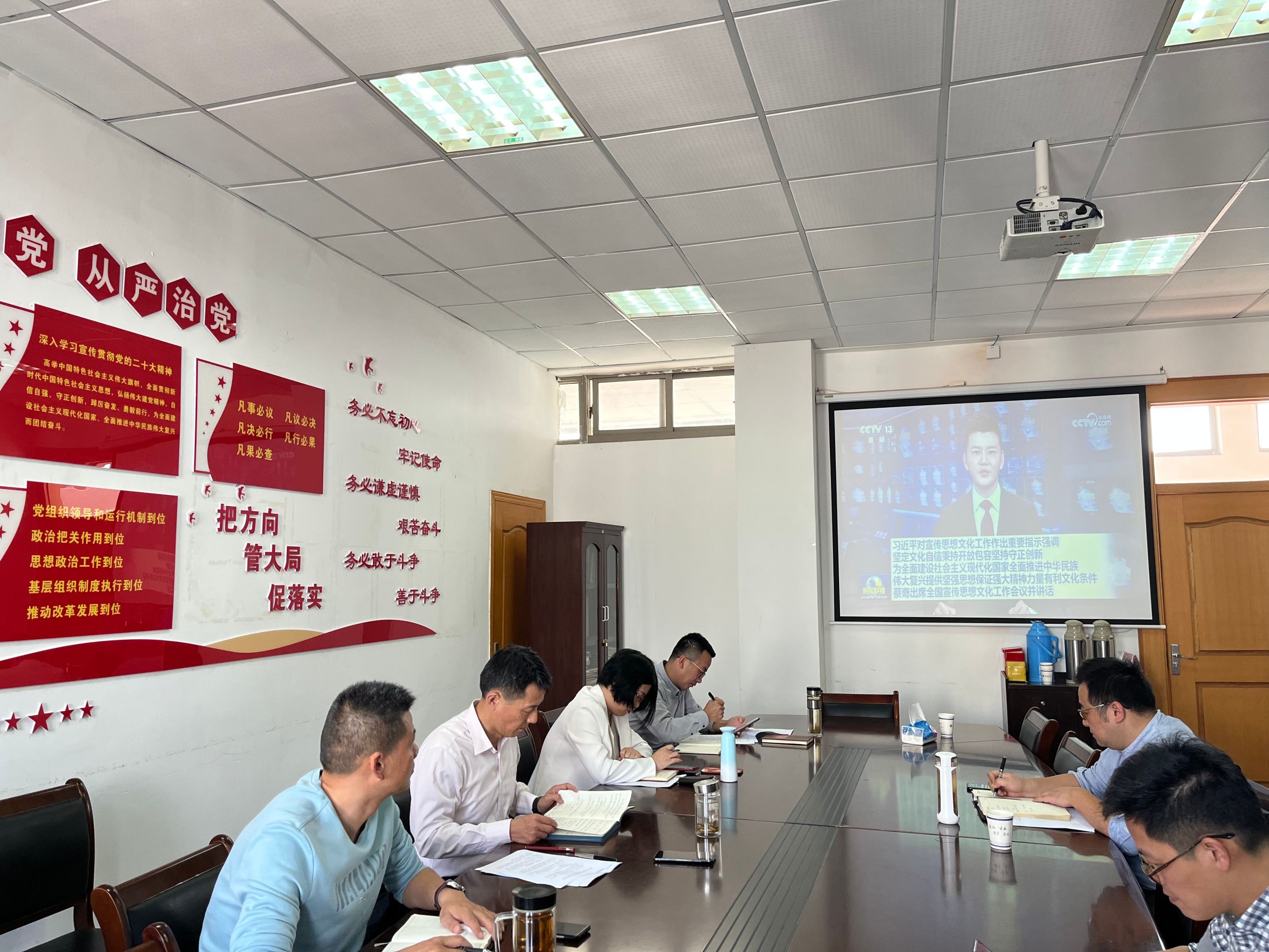 与会人员以观看新闻视频的方式集体学习了习近平对宣传思想文化工作作出的重要指示,集体学习了习近平总书记给全国优秀教师代表的致信和习近平总书记给安徽省潜山野寨中学新考取军校的同学们的回信精神。