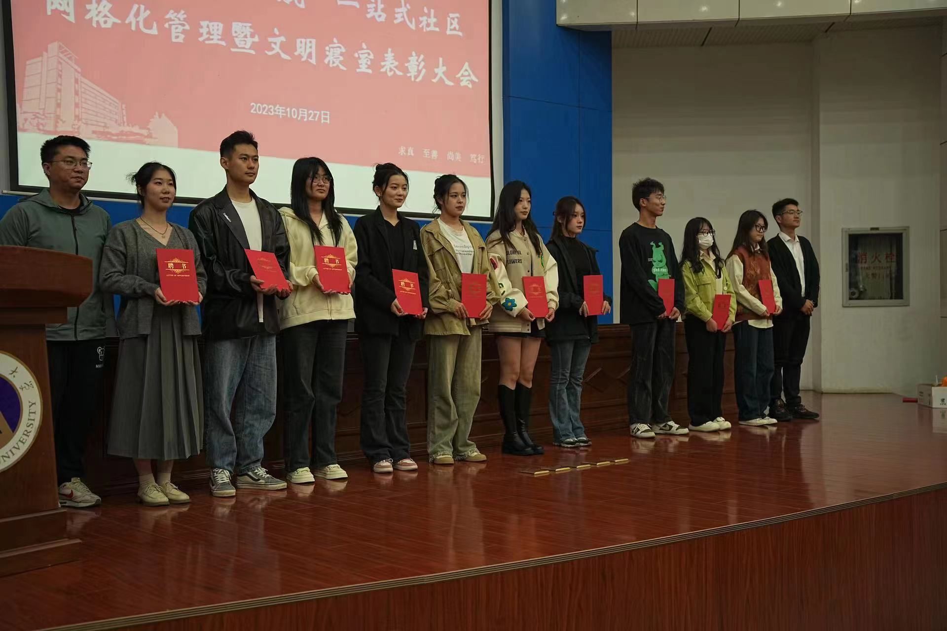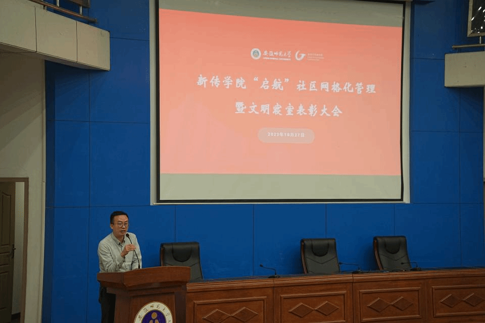 本网讯(马卓越 熊佳梁 陈涛)为全面推进学院文明创建工作,进一步为同学们营造干净、整洁的学习和生活环境,10月27日晚7点,bat365在线中国登录入口在敬文图书馆报告厅召开“启航”社区网格化管理暨文明寝室表彰大会,bat365在线中国登录入口党委副书记吴青山,全体专、兼职辅导员,bat365在线中国登录入口学生宿舍各楼层长,2021、2022、2023级全体寝室长,2020级受表彰寝室长参加会议,会议由辅导员李梦圆主持。