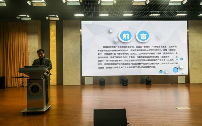 播音主持专业主任邵振奇副教授分析了网络直播的乱象、成因及对策,他认为随着人们物质条件的长期满足和对娱乐需求的日益增长,五花八门的网络直播平台一夜之间花开遍地。一时间直播平台泥沙俱下、乱象横生。造成这种现象无外乎有技术的驱动、直播门槛低、盈利模式、恶意竞争、监管不力等方面。而面对网络直播乱象,我们应在加强法律监管的基础上,加强主播平台的内部建设和网民的道德建设,使多个部门形成合力。