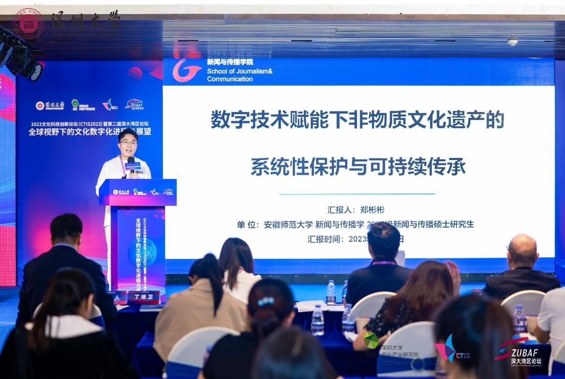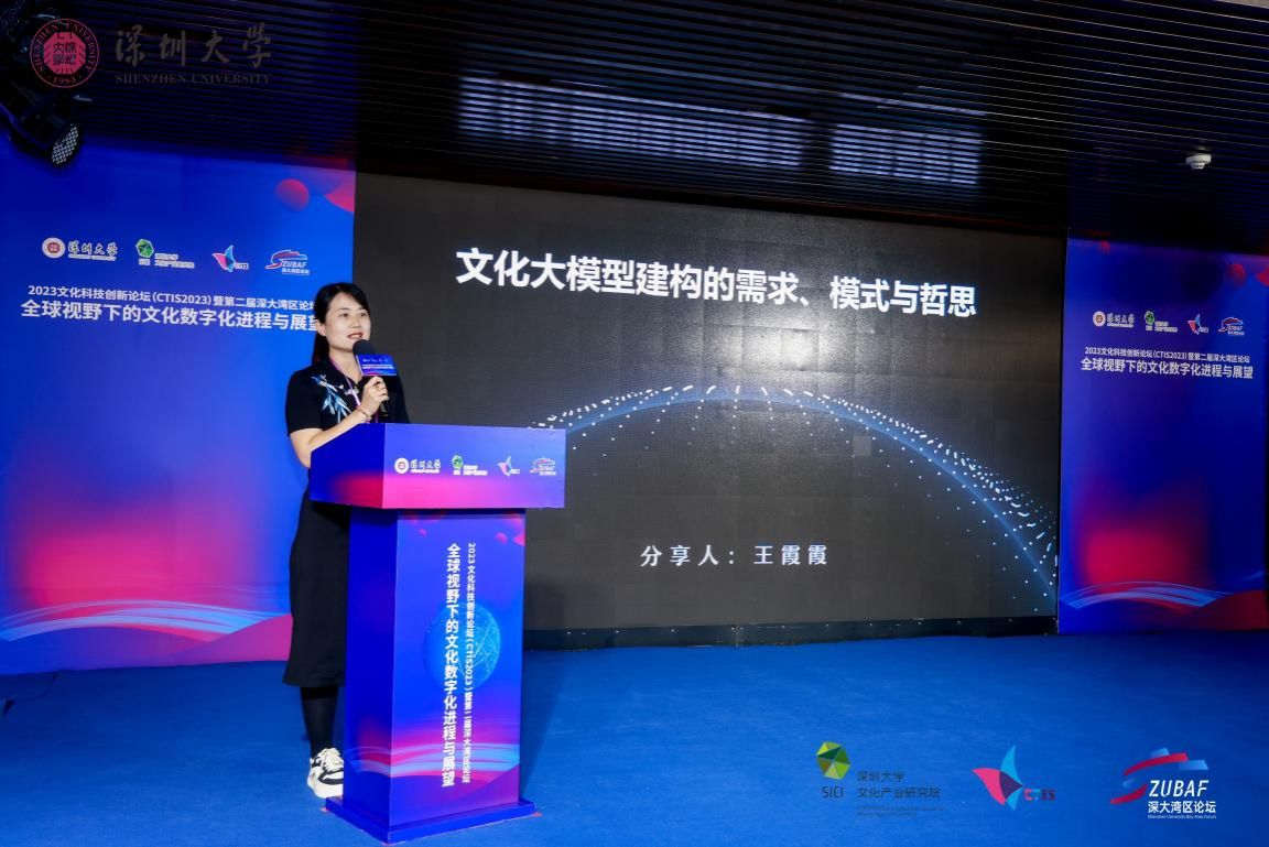 11月4日,由文化和旅游部科技教育司指导,中共深圳市委宣传部、深圳市南山区人民政府、深圳大学主办,深圳大学文化产业研究院、广东省哲学社会科学重点实验室—深圳大学文化数字化与文化创新发展重点实验室承办,深圳市南山区文化广电旅游体育局支持协办的“2023文化科技创新论坛暨第二届深大湾区论坛”在深圳顺利举办。会议吸引了来自国内外的100多名专家与青年学者,深入探讨了全球视野下文化数字化的进程,以及文化科技创新的挑战与机遇问题,以期助力社会主义文化强国宏伟目标的实现。bat365在线中国登录入口教师王霞霞和研究生郑彬彬受邀参加本次论坛。