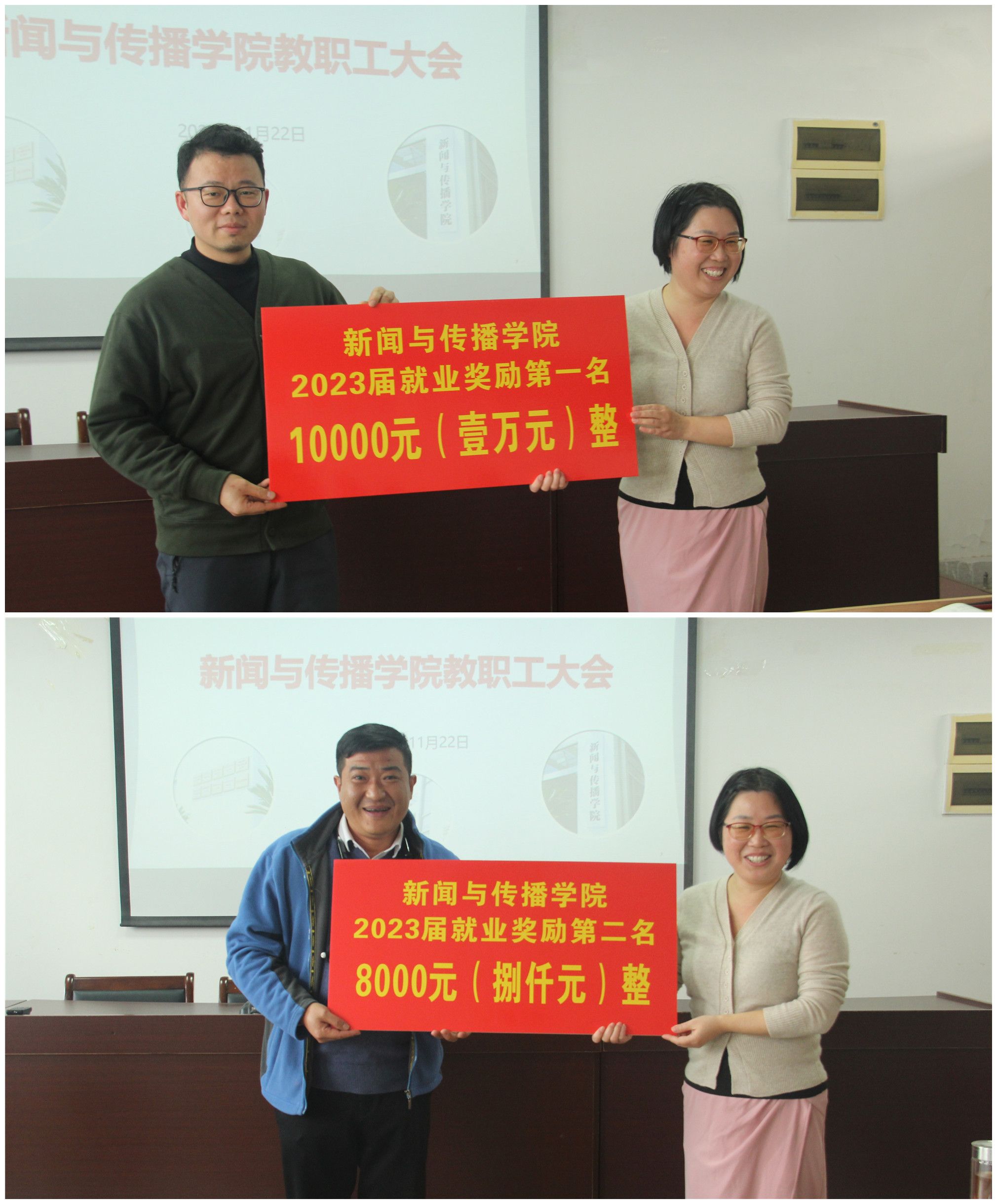 会上,马梅还为2023届本科生就业率前两名的动画和广告学专业颁发了就业奖励。