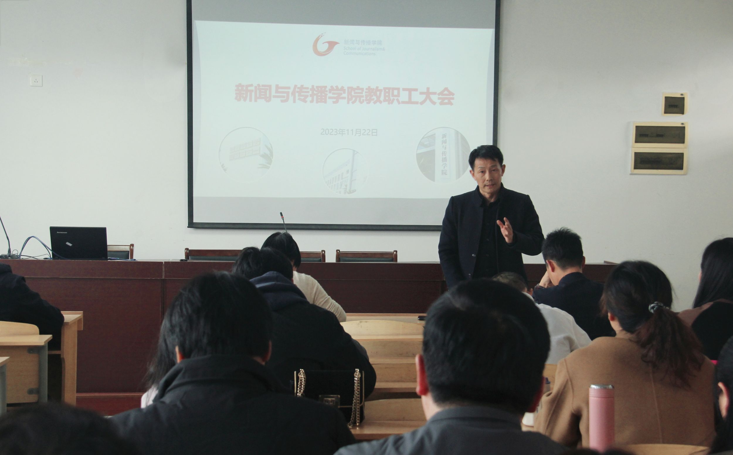 11月22日下午,bat365在线中国登录入口在学院楼406会议室召开全院教职工大会。会议由院党委书记张师帅主持,学院全体教职工参加了此次会议。