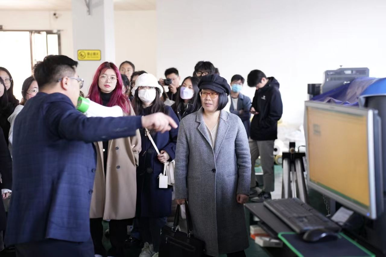 在园区内,产业园区负责人首先向大家简单介绍了共享创意产业园的由来、入驻情况以及运营模式,带领同学们深入园内部,现场观摩广告创意产品的生产流程,解读加工工艺,展示最新的广告产品创意生产技术和裸眼3D等视觉呈现技术。活动中,园区负责人还重点介绍了芜湖市“紫云英”人才计划和园区对创业人才扶持配套政策,并对优秀广告学子加入表示热烈的欢迎。现场同学们也十分珍惜这一次来之不易的机会,积极互动,并与负责人探讨心中疑惑。