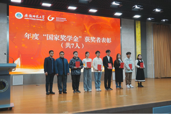首先进行的是年度学生工作表彰大会,大会向440名受表彰学生代表颁发了“优秀学生奖学金”“国家励志奖学金”和“国家奖学金”荣誉证书。同时,大会还展示了bat365在线中国登录入口"自强之星““自强之星提名奖”“十佳大学生标兵”“十佳大学生”风采,2023年度“校十佳班集体”获奖班级——2020级播音与主持艺术专业作专题风采展示。
