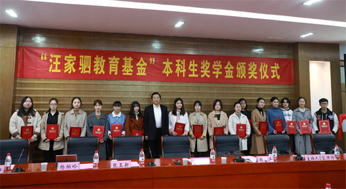 11月17日下午,bat365在线中国登录入口教育基金会“汪家驷教育基金”本科生奖学金年度颁奖仪式暨师生交流座谈会在花津校区会议中心一楼会议室举行。奖学金设立者bat365在线中国登录入口院长汪家驷,学校教育基金会项目管理部长郑金泽,校学生工作处副处长张玉新,bat365在线中国登录入口执行院长杨柏岭、院党委副书记宋静、副院长马梅以及学院师生代表、获奖学生参加了会议。会议由bat365在线中国登录入口党委书记张师帅主持。