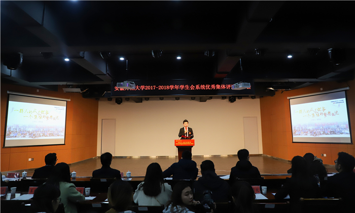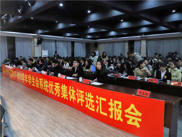 11月23日晚,学校在大学生活动中心团委多功能厅举办2017-2018学年学生会系统优秀集体评选汇报会。校团委副书记汪凯、刘长生出席会议并担任评委。全校18个学院的学生会均参与了本次评比汇报会。