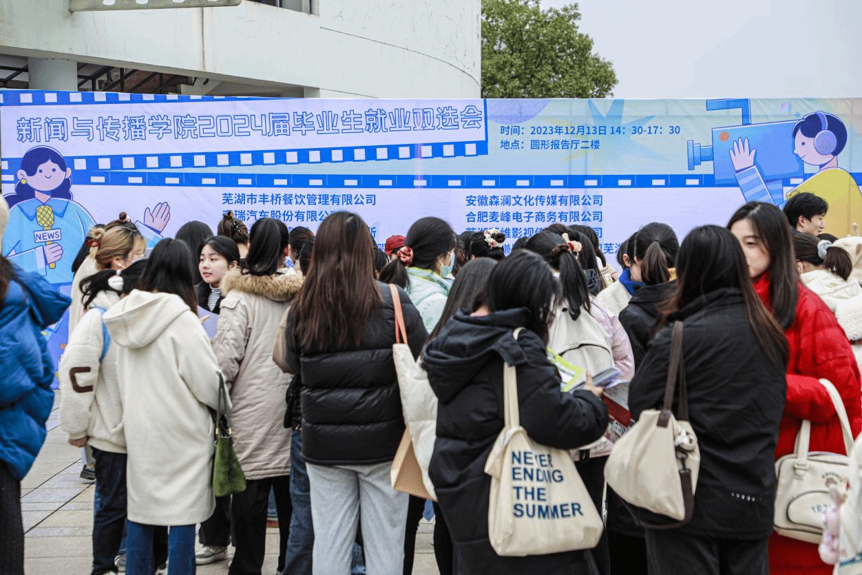 本次毕业生就业双选会聚集了安徽省内和长三角地区共18家企业单位,其中包括兴业银行、奇瑞汽车股份有限公司、蓓慈电器有限公司等。招聘单位业务领域广泛,共提供100余个招聘岗位,累计招聘需求超过150人,岗位涵盖包括新媒体、教育培训、艺术设计、文案策划、视频制作等岗位。此次招聘会吸引了众多2024届本科毕业生、研究生毕业生以及大三年纪面临实习的学生超过300人积极参与。