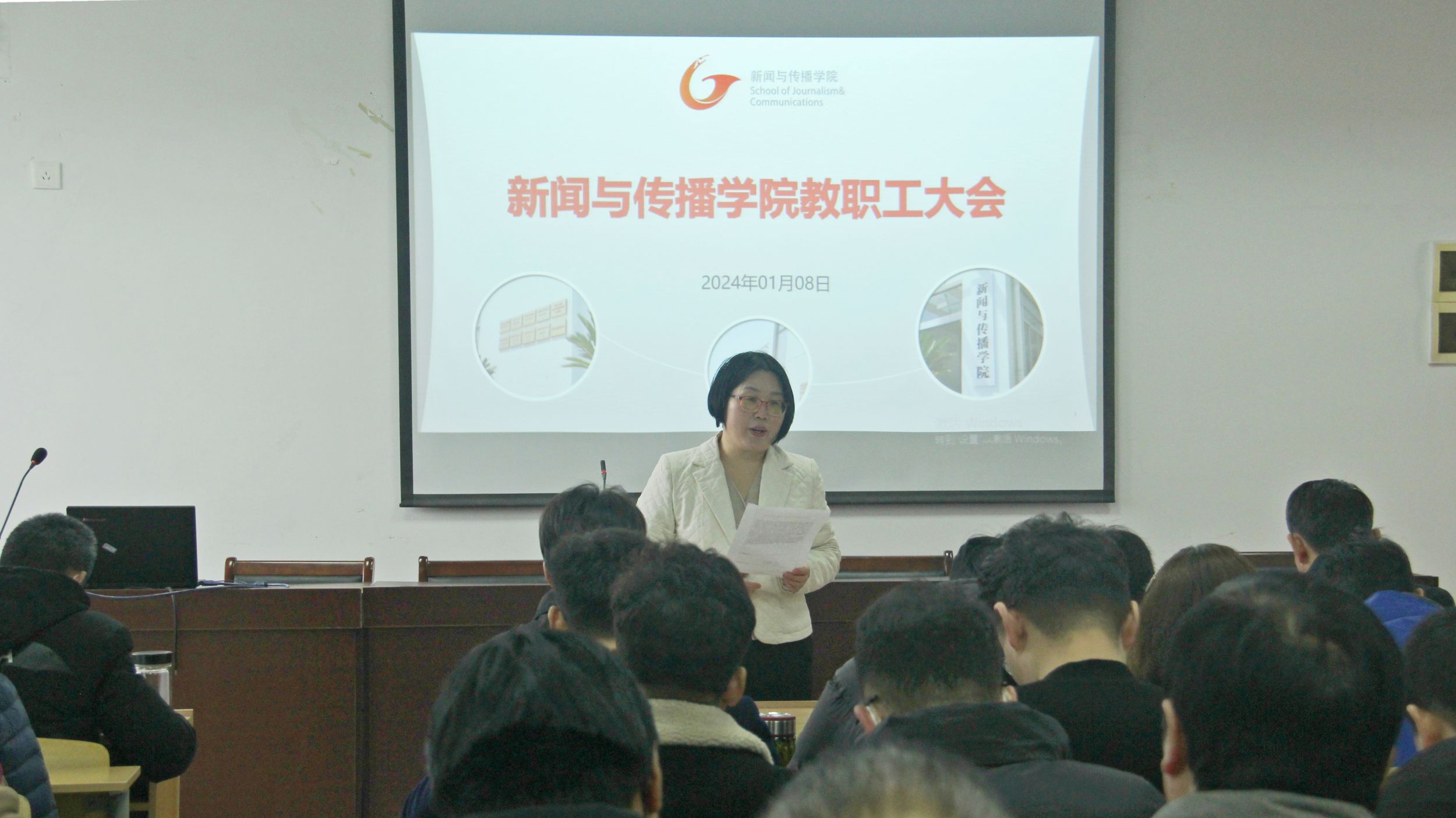 1月8日下午,bat365在线中国登录入口召开全体教职工大会,会议由党委书记张师帅主持,学院领导班子与全体教职工参加会议。