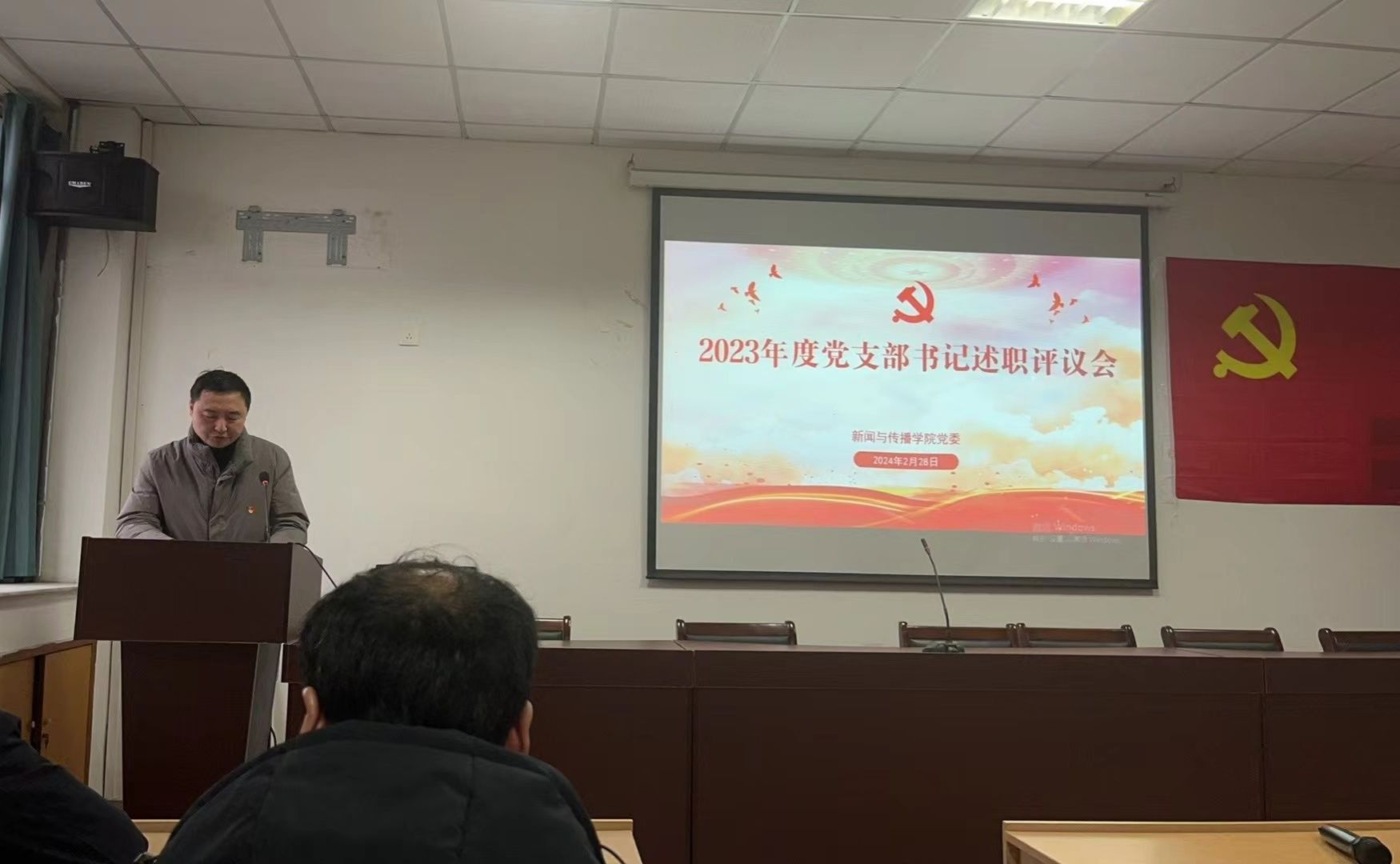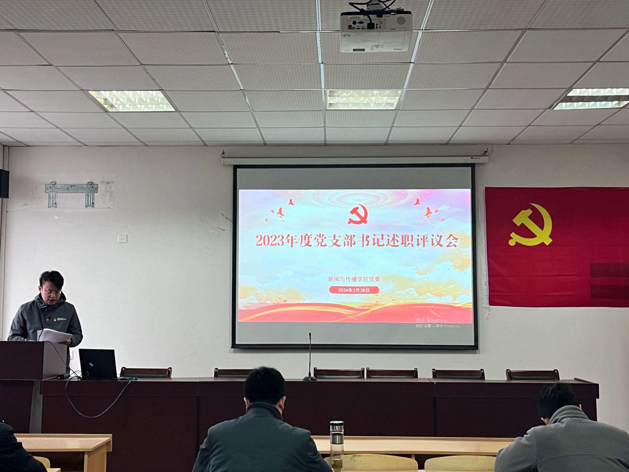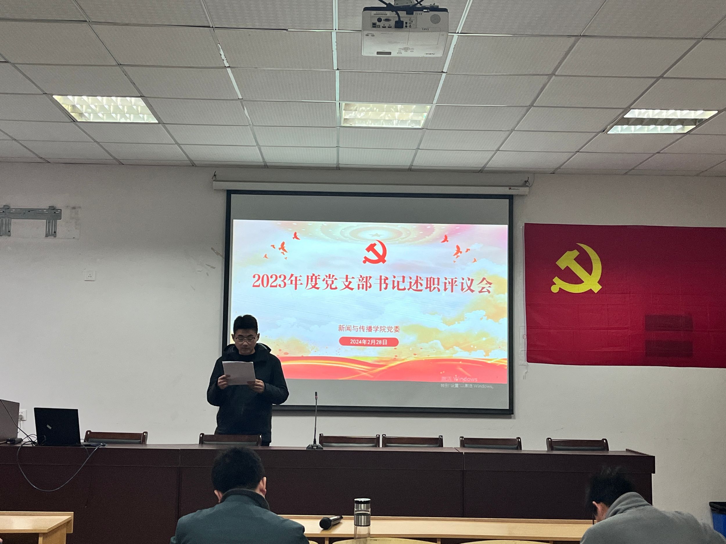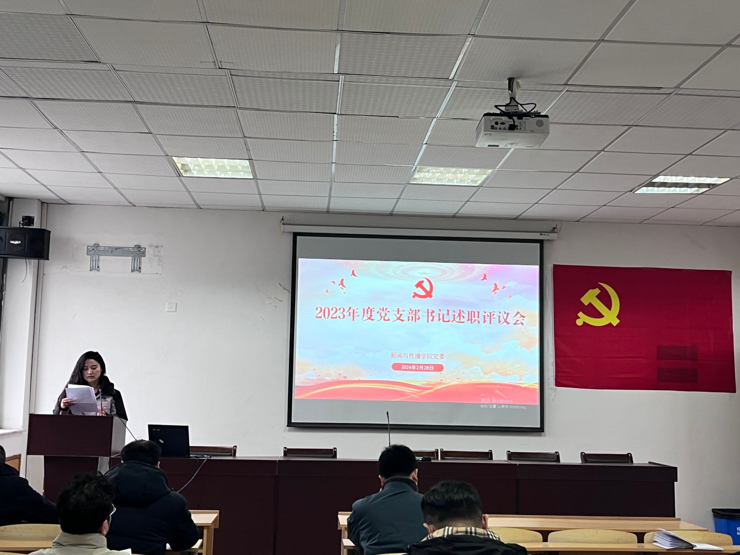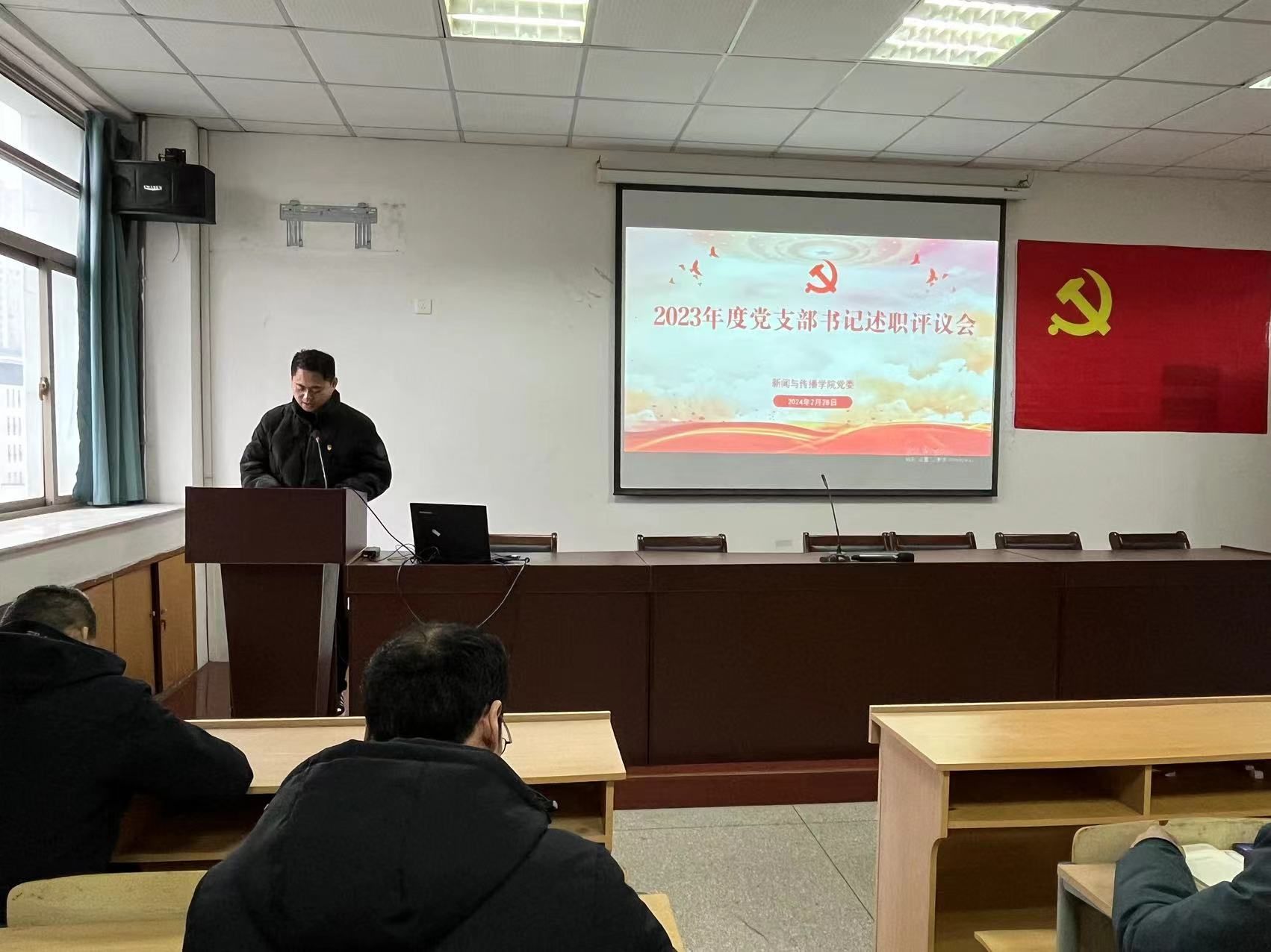 本网讯(新传党委)2月28日下午,bat365在线中国登录入口召开2023年度党支部书记抓基层党建述职评议会议。学院党委领导班子成员,全体党支部书记、师生代表参加会议,学院党委副书记吴青山主持会议。