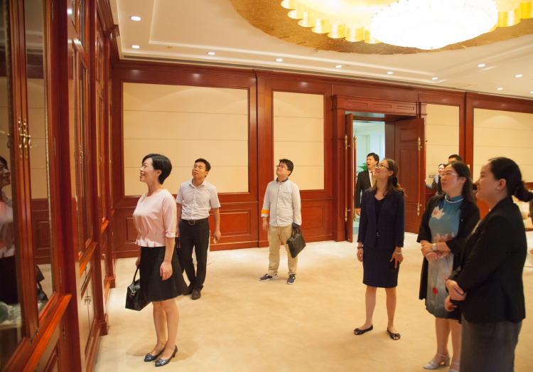 座谈签约前,宾主双方共同参观了海螺国际会议中心的学术报告厅、会客厅、餐厅、会议室、客房、影剧院、健身场馆等等,夏婷为会议中心工作人员详细介绍了酒店各个厅室的功能定位和日常运营情况。