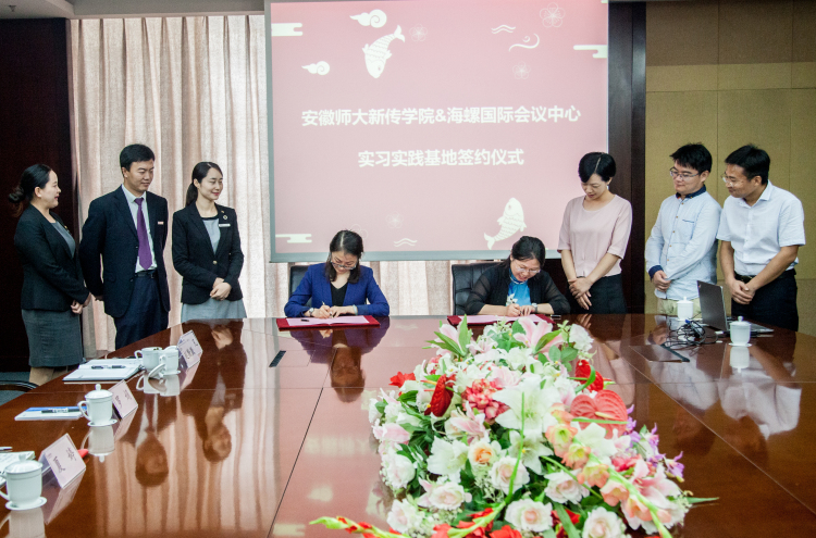 在合作共建座谈会上,马梅介绍了bat365在线中国登录入口的总体架构、专业设置、历年招生等情况,表达了学院与海螺国际会议中心开展实践合作的初衷、目标和意义;马梅表示,学院热情希望与会议中心建立以空乘专业为主,同时覆盖其他专业的总体性、面向全院各专业的实习基地。宋静介绍了学院本次参会人员,分享了参观会议中心的感悟,并对海螺国际会议中心的热情接待表示感谢,同时表达了与海螺开展专业实践合作的深切愿望。夏婷介绍了海螺酒店产业的发展状况,表达了集团与bat365在线中国登录入口开展合作的愿望与计划,她表示,海螺国际会议中心可以与学院空乘专业、新闻传播类专业开展契合度很高的合作。双方还就实习岗位设置与专业配对、2019年校招计划、开展实习实践的方式、时间等具体事宜开展了深入交流。最后,校企双方代表马梅和夏婷现场签订了共建实习实践基地协议书。