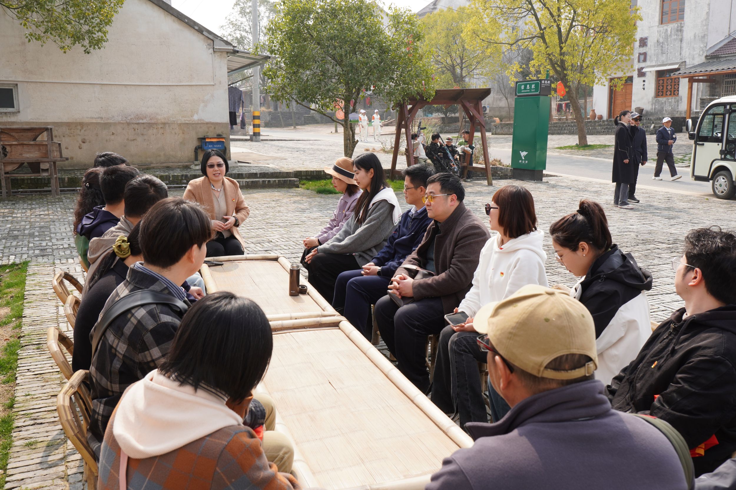 上午,全体人员参观了鸠兹湾艺创共富乡村全域。“鸠兹湾艺创共富乡村”项目系湾沚区花桥镇人民政府于2021年底委托安徽顶峰文旅运营打造的“宜居宜业和美乡村”示范点,采取“党建引领、农民主体、社企共建、促进共富”方式,实现与民共建共创共富。在廉洁文化广场,学院党委副书记、纪委书记吴青山结合现场廉洁文化宣传内容,即兴开展了一堂生动形象的“廉洁微党课”。他强调,大家要时刻把廉洁精神铭记于心,始终用廉洁精神自觉约束和规范自身行为,在学院营造恪守职业道德、爱岗敬业、廉洁自律、奉公守法的氛围。在桑梓小院,大家围坐一堂,认真聆听学院执行院长马梅关于乡村振兴的深入解读。马梅从乡村振兴的内涵、主体等多个方面进行了详细阐述,她指出,乡村振兴并非仅仅是农村人的责任,也并非意味着要将农村人留在农村,城市人留在城市,而是要实现城乡之间的自由流动与相互借鉴。