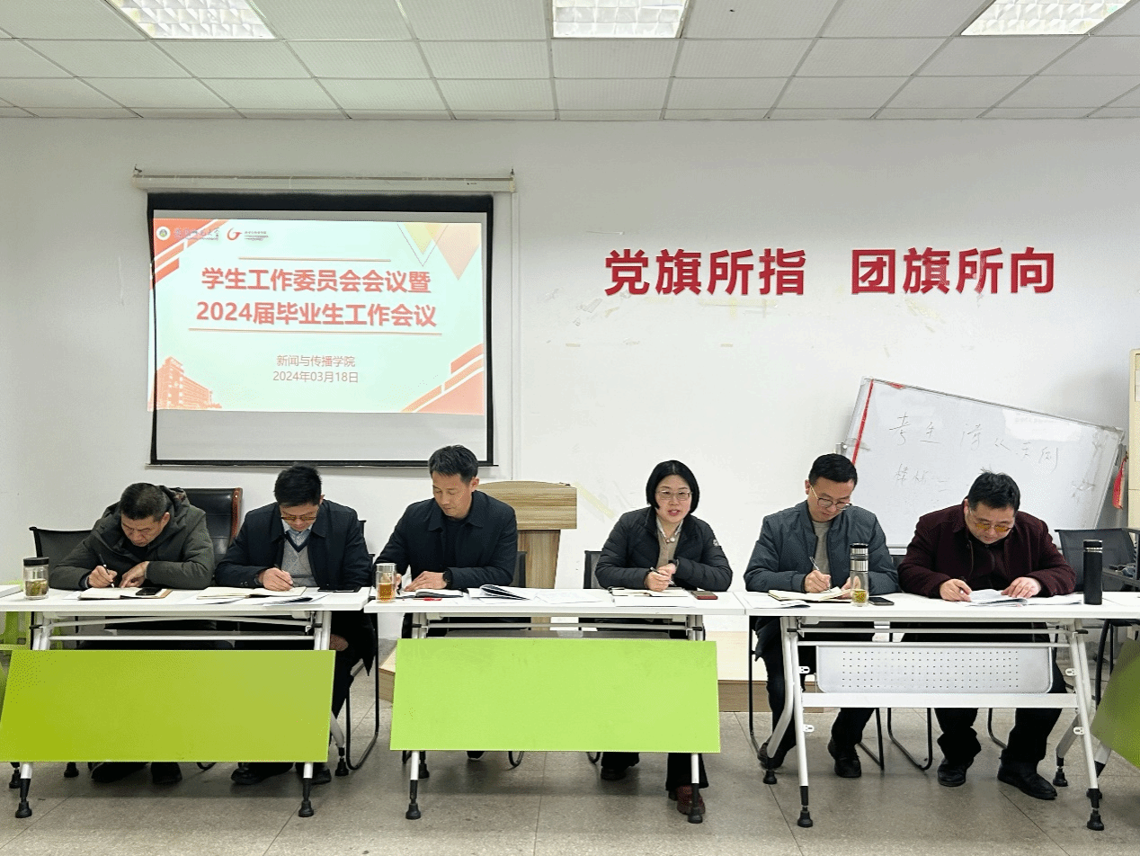 3月18日下午,bat365在线中国登录入口召开学生工作委员会会议暨2024届毕业生工作会议,院班子成员、专业负责人、学位点负责人,本科生、研究生辅导员,教学秘书,研究生秘书和部分学工委学生委员参加会议,会议由院党委书记、学工委主任张师帅主持。