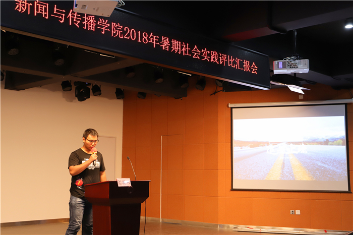 七月盛夏,新传学子各自成队奔赴全国各地,穿梭在烈日当空的酷暑中,穿行在社会实践的最前线,而今天他们站在汇报会的演讲台上,结合ppt道说他们挥洒汗水、燃烧青春的故事。