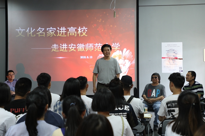 吴雪在讲话中指出广大师生要在习近平新时代中国特色社会主义思想和党的十九大精神的指导下,积极提升作品的思想性、艺术性,创新作品创作的手法、创作的理念和格局,强调理论与实践对于专业创作的积极作用,应进一步加强艺术理论的学习。徐殿奎肯定了师大摄影专业师生的创作水平,并从“学习摄影获得什么?”和“摄影最需要什么?”两方面指出学习摄影能获得的不仅是技术,还有不同寻常的思维,他鼓励同学们多思考、多吸收其它艺术门类的精髓,积极创新。陈志勇高度赞扬了摄影专业的办学成就,并从自身经历谈起,以“投入、坚持、情怀”阐释了摄影艺术的意义,以省摄协策划的“合肥一日”活动向广大师生介绍了大型摄影项目的策划与实施。乐卫星对摄影专业近年来的发展和取得的成绩表示祝贺,鼓励摄影专业师生积极利用新媒体进行互动,多参加影展影赛,从实践中提升艺术水平和创作能力。王岩分享了创作的心得和图像制作的技巧,并现场进行了摄影创作指导。