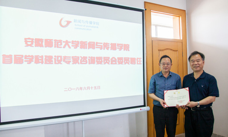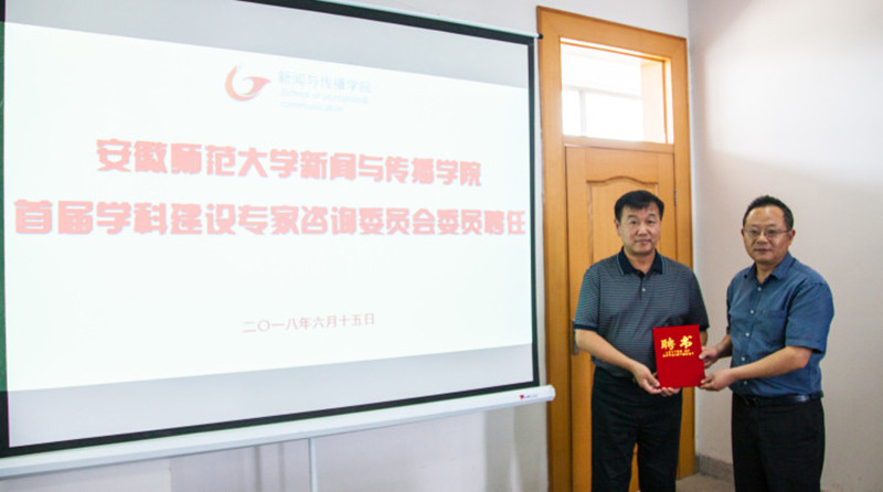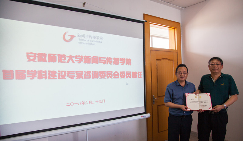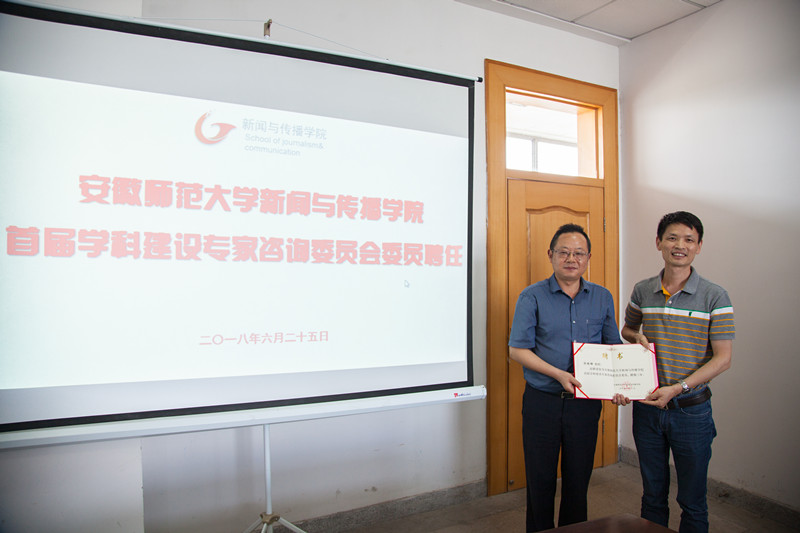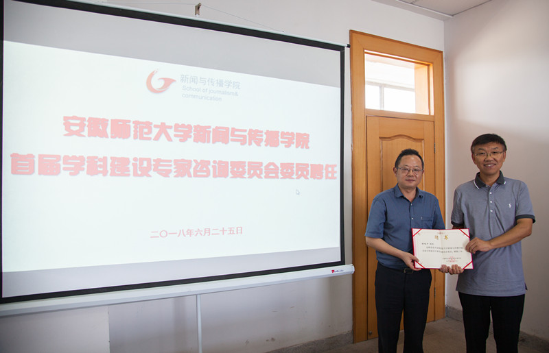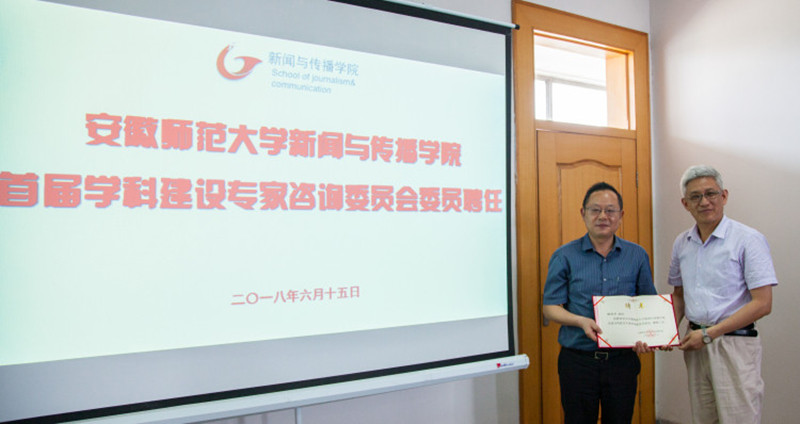 6月25日,学院聘请了国务院学位委员会新闻传播学学科评议组成员、华中科大新闻与信息传播学院原院长、博士生导师张昆教授、南京大学新闻传播学院博士生导师丁柏铨教授、华中科大新闻与信息传播学院品牌传播研究中心主任、博士生导师舒咏平教授、南京师范大学bat365在线中国登录入口执行院长、博士生导师张晓峰教授、安徽大学新闻传播学院博士生导师王天根教授为新闻传播学学科建设专家咨询委员会委员。